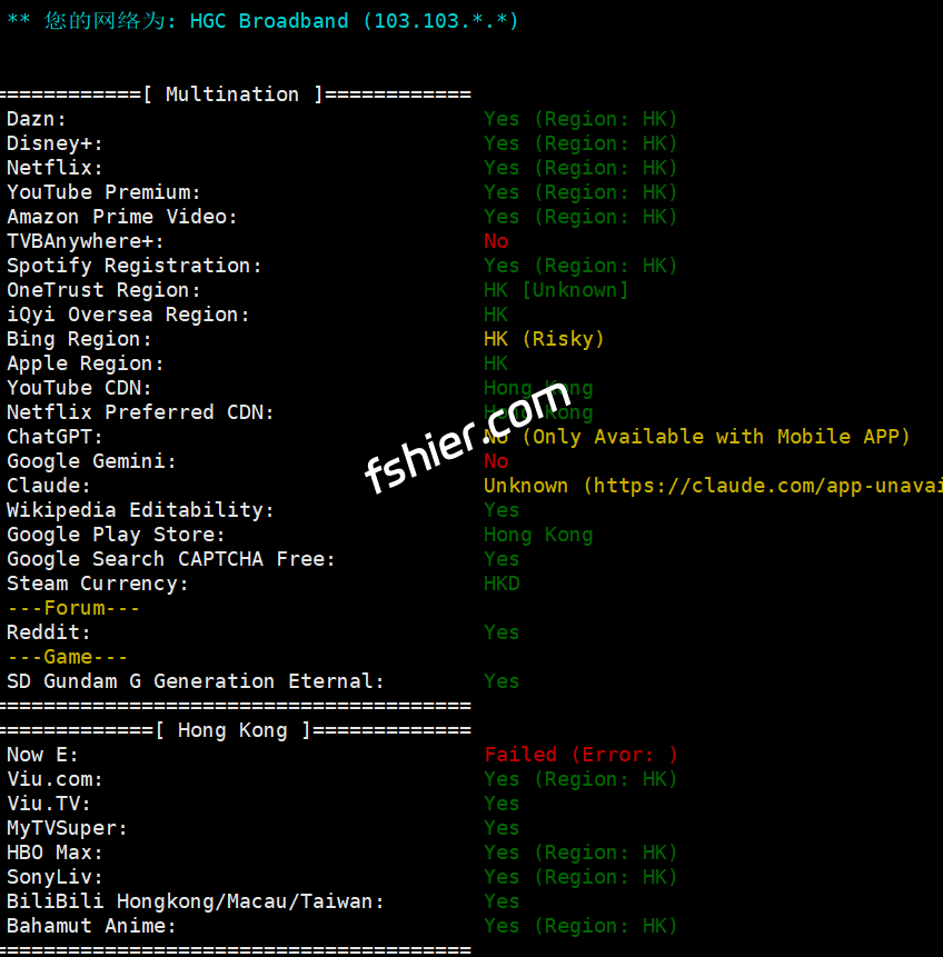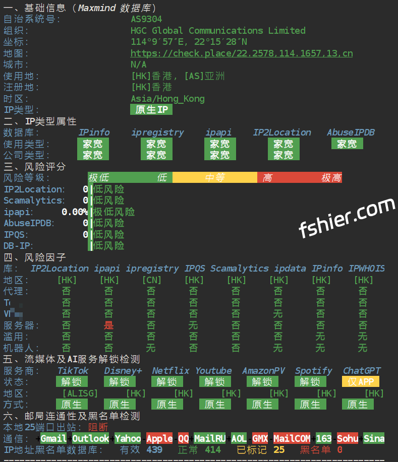 特色双ISP属性IP,基本上香港 能解锁的都解锁了,tiktok、chatgpt、gemini是不支持香港地区的这就没什么办法了。