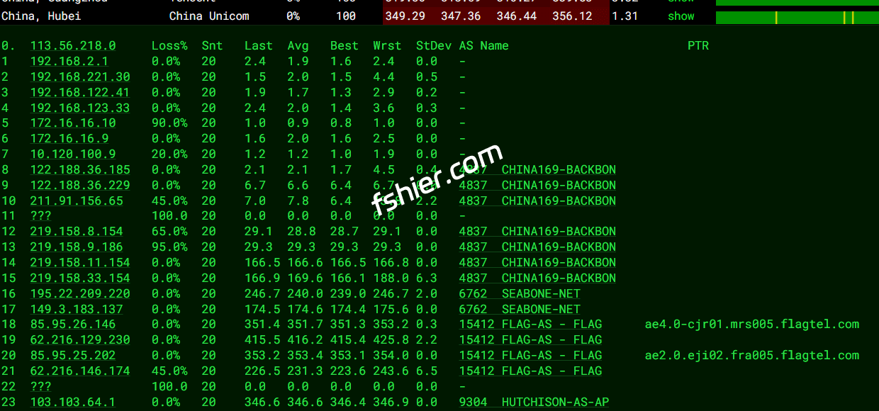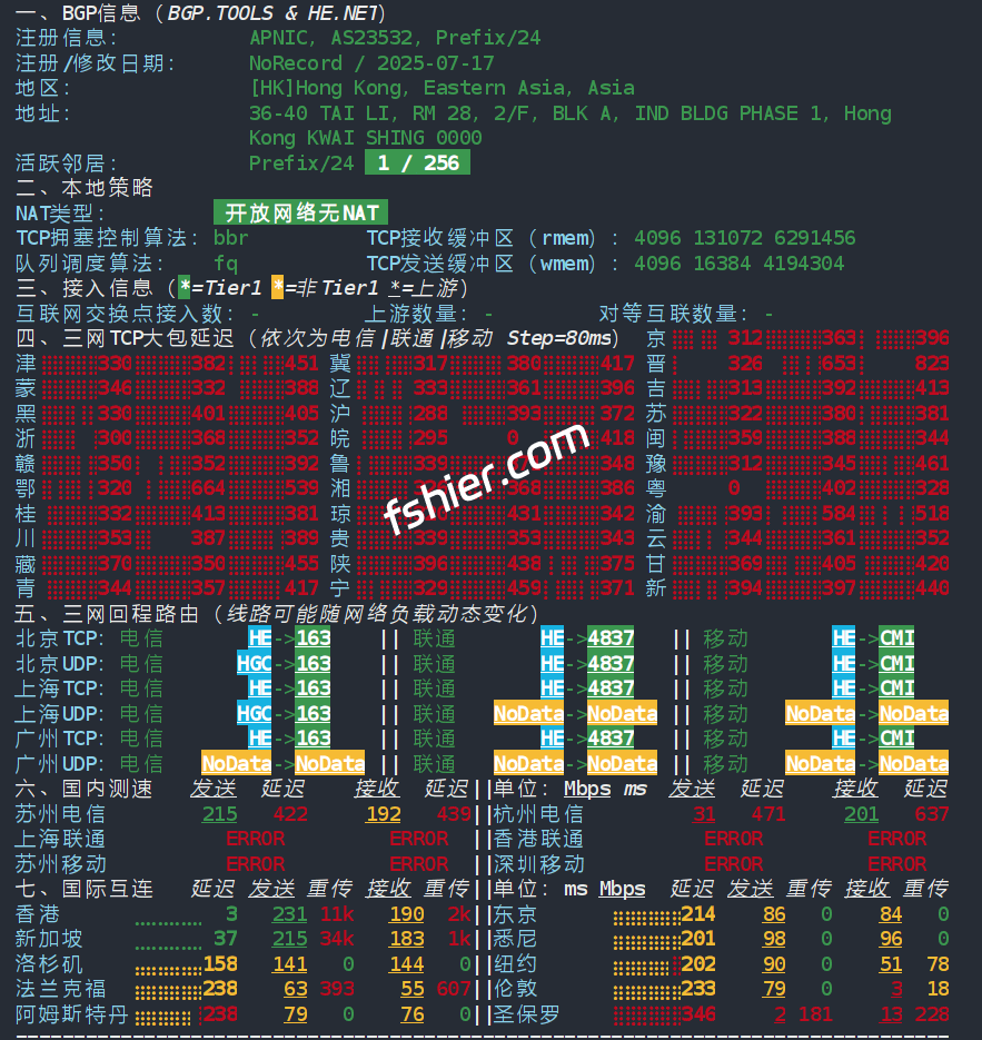 上海TCP:电信 HE->163 || 联通 HE->4837 || 移动 HE->CMI