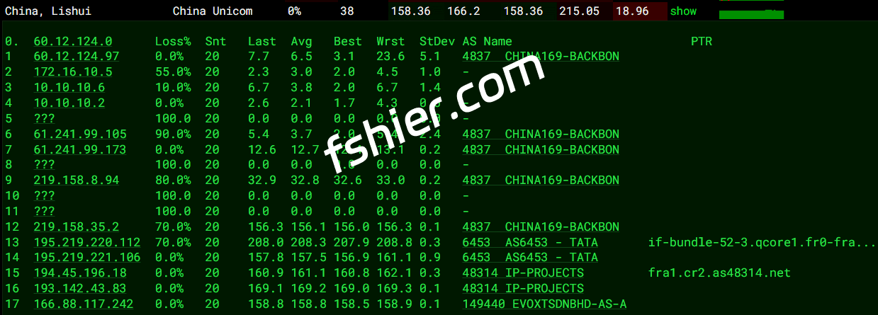 12 215.98ms 2408:8001:3171:*:*:*:*:* AS135061 中国 广东省 深圳市 chinaunicom.cn 联通