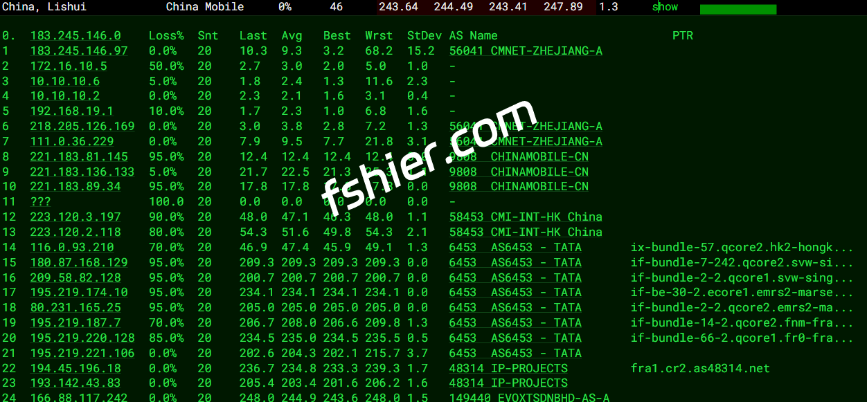4-6 1.07ms 195.219.*.* AS6453 德国 黑森 美因河畔法兰克福 tatacommunications.com