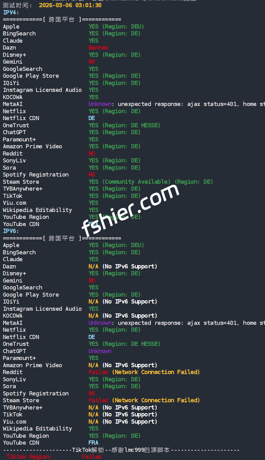 IPv4/IPv6 : ✓ Online / ✓ Online