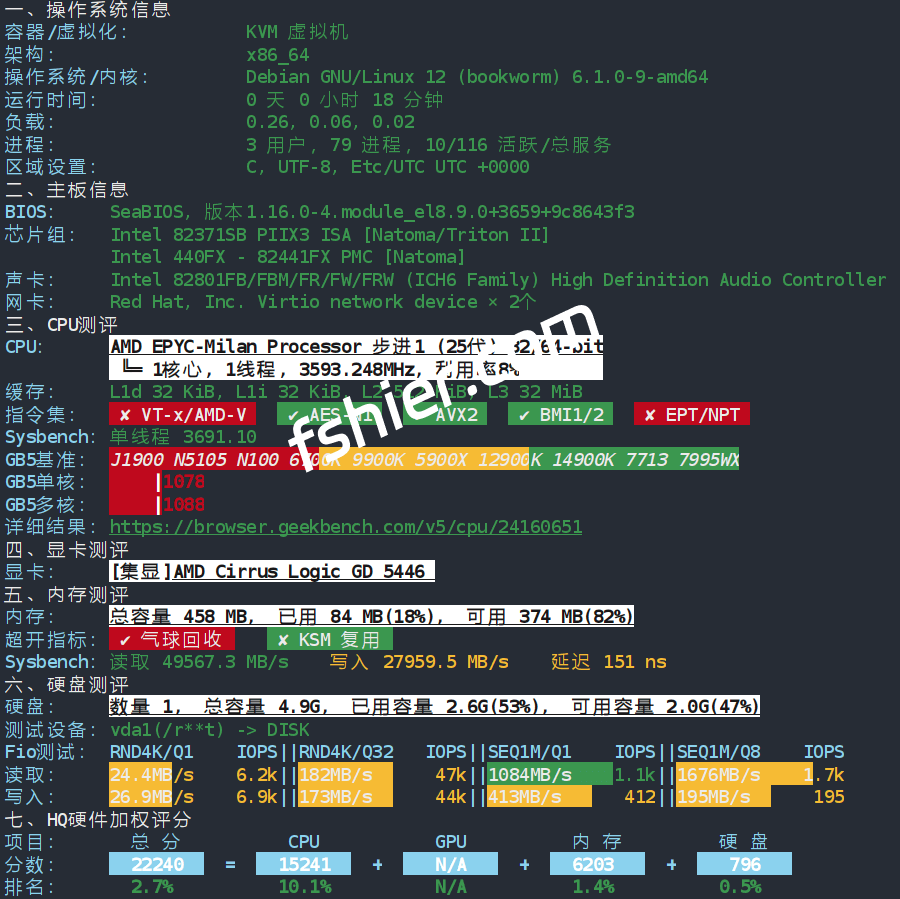 AMD EPYC-Milan Processor猜测应该是AMD EPYC 9004系列,主频 4491.540 MHz,归属地法兰克福,支持IPv6,当前实测I/O大致699.7 MB/s: