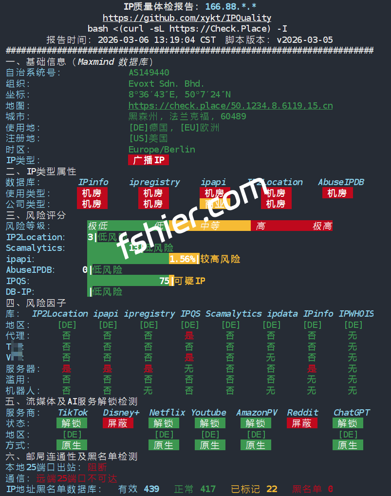 1 0.36ms 166.88.*.* AS149440 德国 黑森州 美因河畔法兰克福 evoxt.com