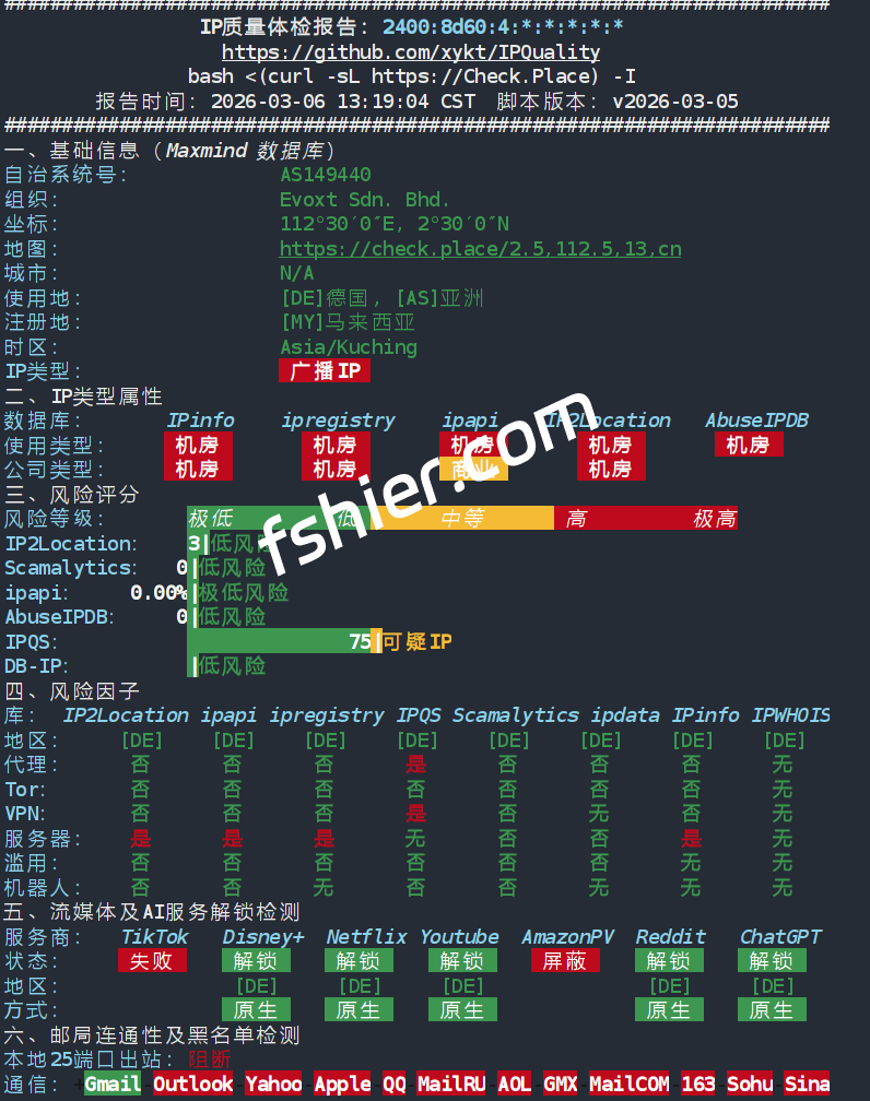 1 0.38ms 2400:8d60:4:*:*:*:*:* AS149440 德国 黑森州 法兰克福 evoxt.com