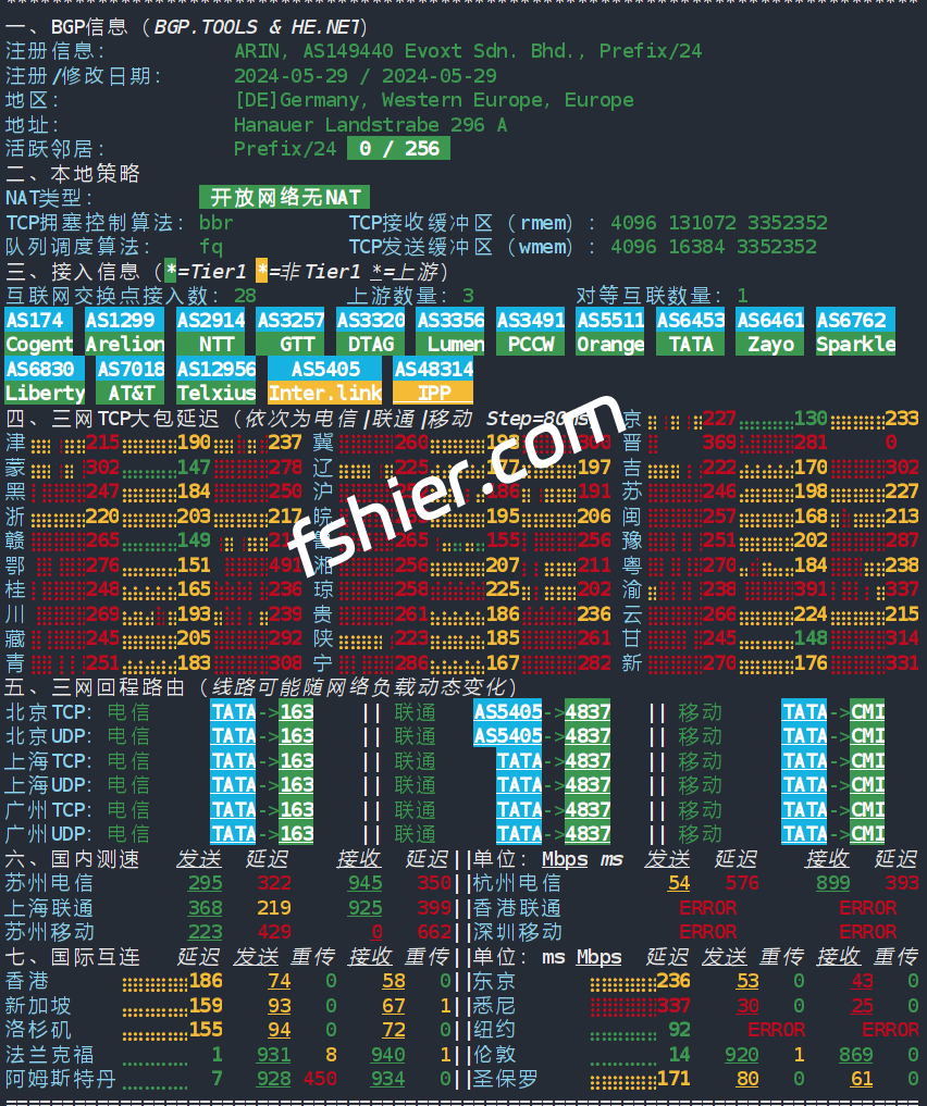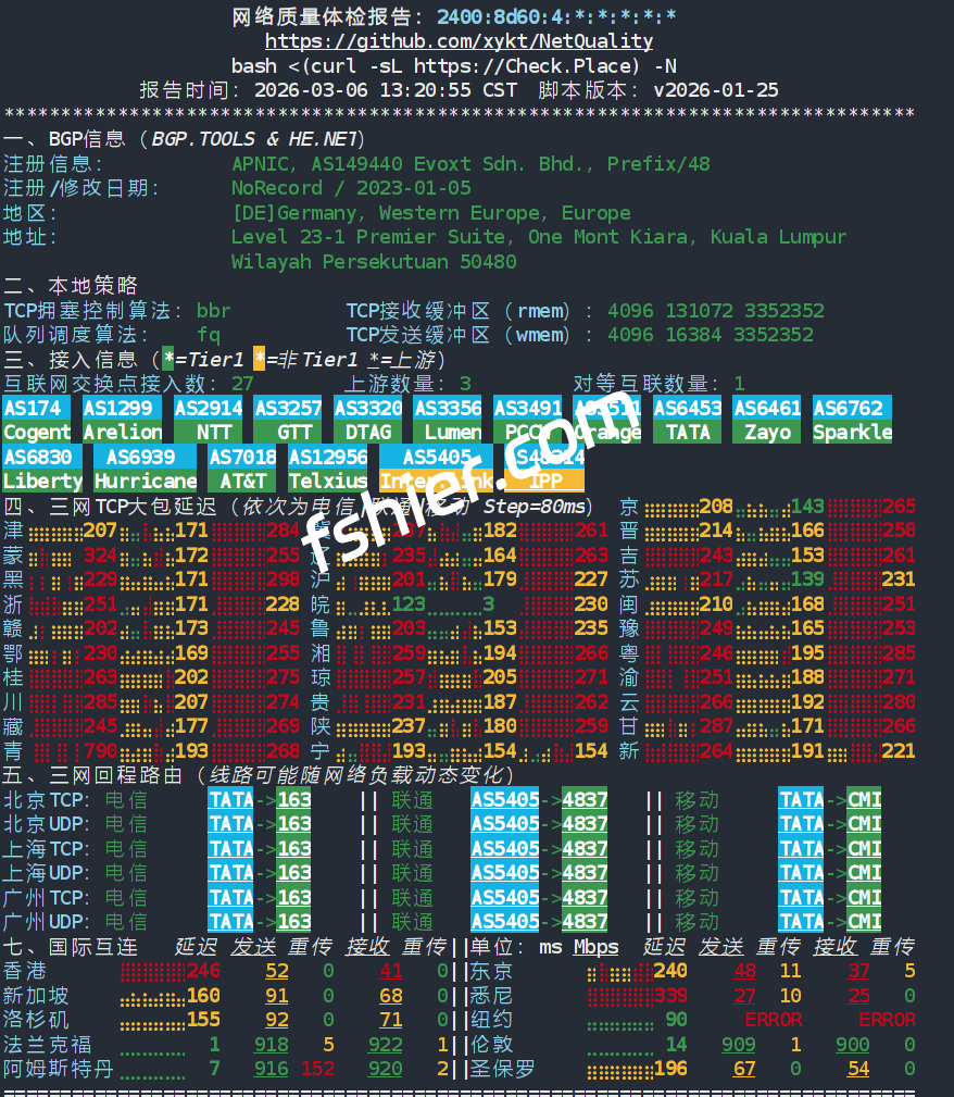 地理路径:德国 -> 香港 -> 上海 自治系统路径:AS149440 -> AS48314 -> AS6453 -> AS58453 -> AS9808