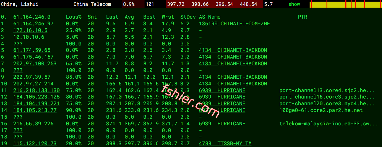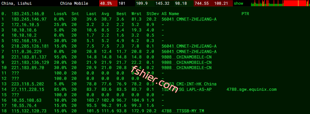 8 52.89ms 223.120.*.* AS58453 [CMI-INT] 中国 广东 广州 cmi.chinamobile.com 移动