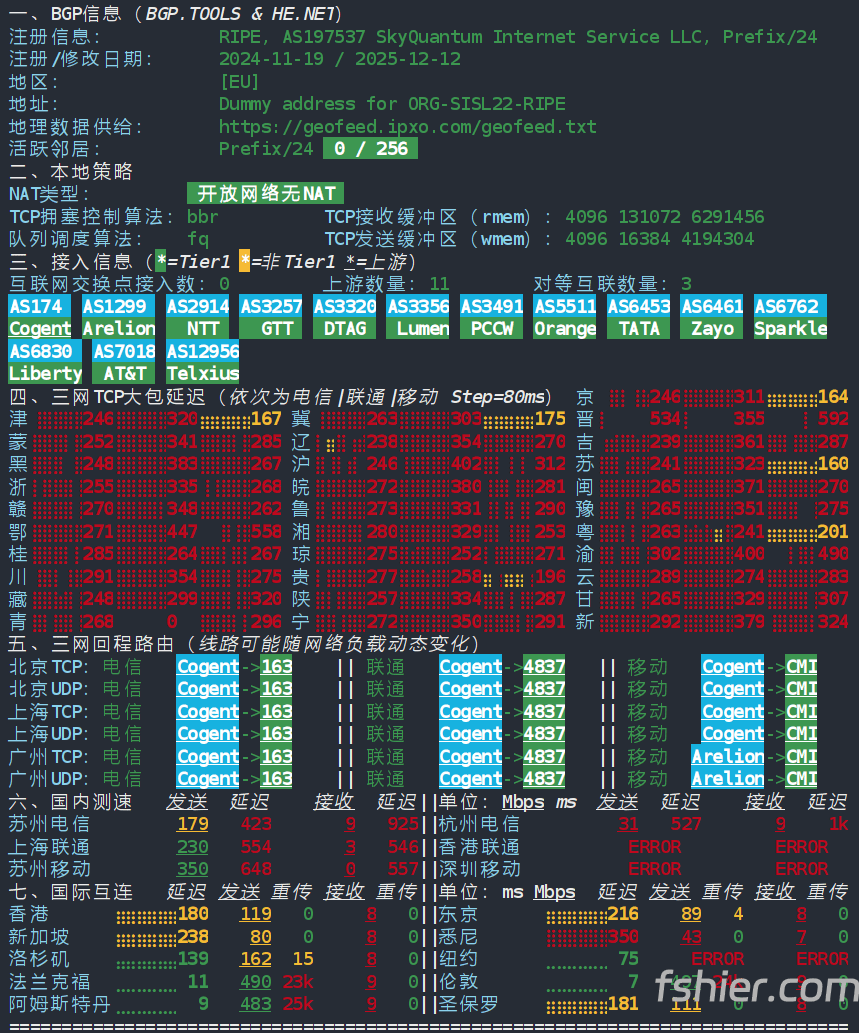 地理路径:法国 -> 美国 -> 上海 自治系统路径:AS197537 -> AS174 -> AS58453 -> AS9808