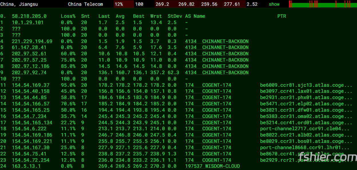 上海 电信 Cogent -> 163