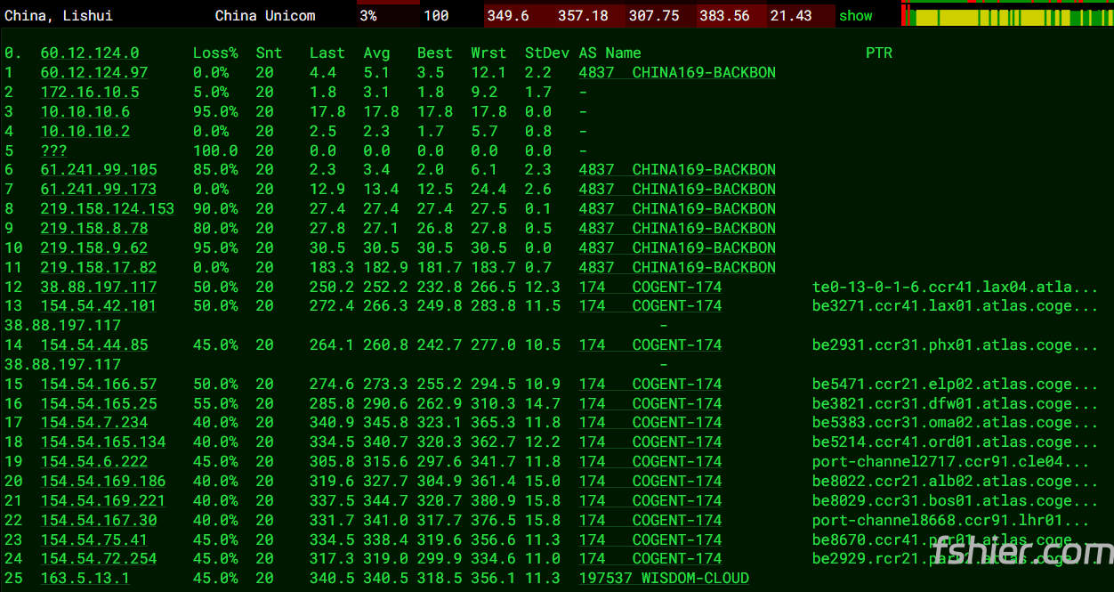 6 282.59ms 149.11.*.* AS174 [COGENT-149] 德国 黑森州 美因河畔法兰克福 cogentco.com