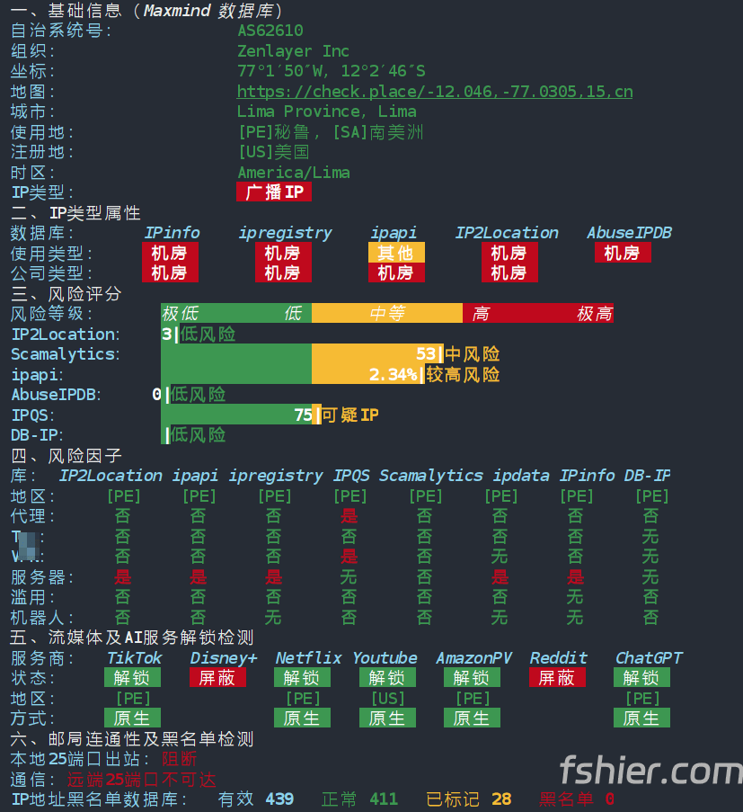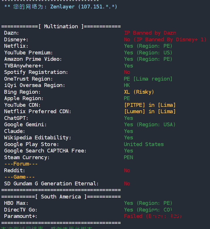 标注红色文字的为测评机器,机房为秘鲁首都利马~