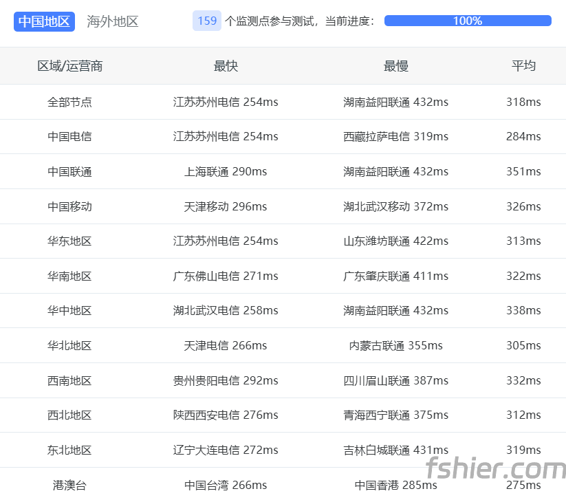 | 上海 | 163 | 264ms | 秘鲁 → 美国 → 163骨干 → 上海 |