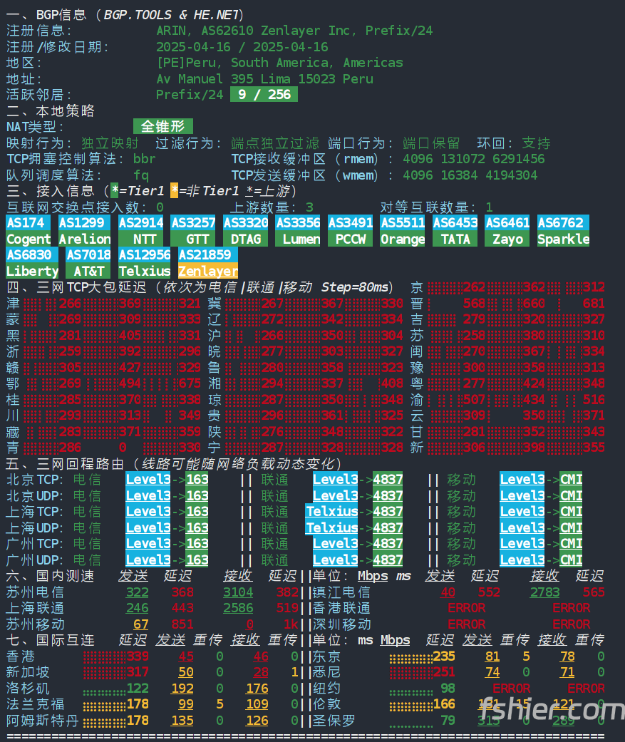 | 上海 | CMI | 297-300ms | 秘鲁 → 美国 → 移动CMI → 上海 |